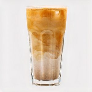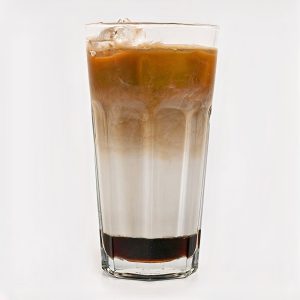 ۳۰۰ میلی لیتر، بیس فوم شیر، یک شات اسپرسو، ۷۰% قهوه روبوستا و ۳۰% قهوه عربیکا، یخ